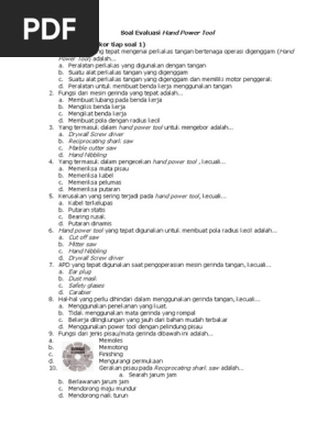 Suatu alat perkakas tangan yang digenggam dan memiliki motor penggerak d. Dibawah ini beberapa alat tenaga yang sering dipakai dalam bekerja, kecuali. Pernyataan yang tepat mengenai perkakas tangan bertenaga operasi digenggam ( hand power tool) adalah. Walmart.com has been visited by 1m+ users in the past month Das ist das neue ebay. So many saws in 1 amazing tool! Hand tools dan power tools. Soal evaluasi hand power tool. Über 80% neue produkte zum festpreis. Setelah selesai menggerinda lepaskan power dan letakan gerinda di atas dengan disc menghadap ke atas. Nebosh informasi kursus …terbiasa dengan gaya soal ujian, menjawab pertanyaan dan bagaimana untuk mendapatkan suara terbanyak. Pilihan ganda (skor tiap soal 1) 1. Aug 13, 2021 · inilah soal pilihan ganda power tools dan hal lain yang berhubungan erat dengan soal pilihan ganda power tools serta aspek k3 secara umum di indonesia.