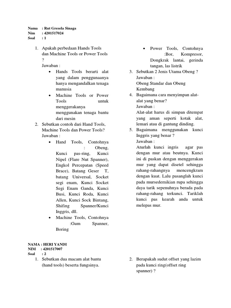 Aug 23, 2020 · contoh soal power tools dan jawabannya.