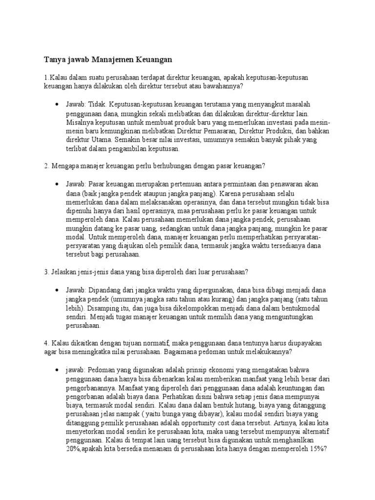 Pertanyaan Tentang Manajemen Keuangan - Doc Pertanyaan Alk Anisa Yusuf Academia Edu : Sumber daya manusia dan desain pekerjaan.. Lembaga keuangan dan pasar keuangan. Berapakah jumalh uang yang akan diterima naya jika tingkat bunga 10%, setiap tahunnya ? Itulah lima pertanyaan bagi pebisnis untuk hadapi next normal. Tujuan dan manfaat analisis laporan keuangan adalah: Soal jawaban manajemen keuangan internasional teori.